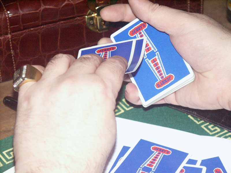 En 1999 (si je ne me trompe pas) ma fille Alexandra et moi étions engagés pour nous produire une semaine entière au Magic Castle puis pour quelques contrats à Las Vegas. Vous pensez bien que je n’ai alors eu qu’une seule idée en tête : faire un tour au casino d’origine de mes cartes fétiches, le Jerry’s Nugget ! Michael Weber m’avait dit qu’il y restait quelques jeux à vendre, donc dès notre arrivée j’ai immédiatement demandé à Philip Varricchio, qui était venu nous chercher en limousine, de nous y conduire. Il faut dire qu’il était plutôt étonné, car nous n’avions même pas posé nos valises à l’hôtel (oui, je suis un fou) et le vieux casino Jerry’s n’était pas vraiment réputé pour être un lieu incontournable ! Je lui ai alors dit que je voulais m’y rendre pour acheter des cartes Jerry’s Nugget. Selon lui il était impossible de s’en procurer pour la bonne et simple raison qu’il n’y en avait plus depuis très longtemps, mais j’insistais tellement qu’il finit par obtempérer (hé, hé, hé !). Arrivés sur place, nous nous sommes dirigés vers le gift shop du casino et je me suis renseigné auprès du vendeur pour savoir s’il vendait leurs jeux.