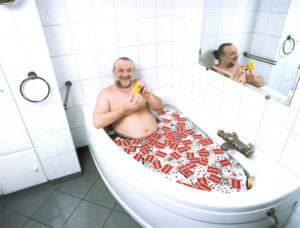 Top la photo dans la baignoire… on dirait un peu Picsou dans son bain (oui picsou lui aussi a la barbe)…un brin provocateur quand même. Certainement un clin d’œil adressé à ses faux amis détracteurs. Mais quand la provoc reste drôle, elle est bonne.