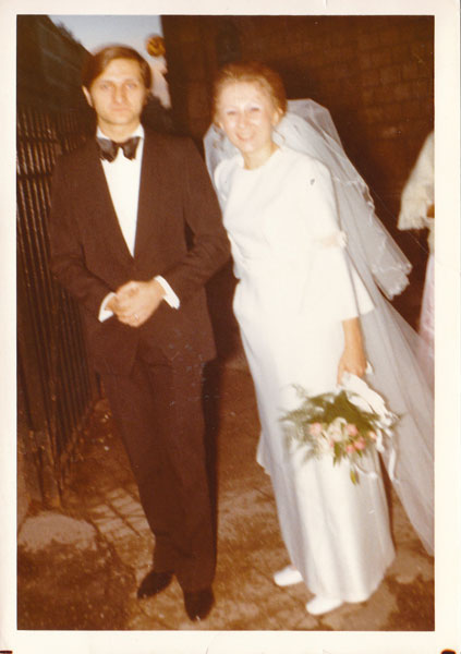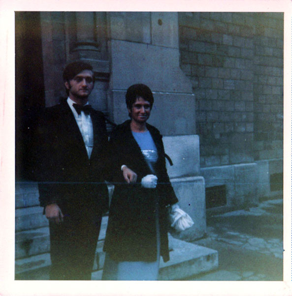 Devant le parvis de l’Eglise Immaculée-Conception le 30 novembre 1970 à Paris dans le 12ème. Le jour fatidique où beaucoup se demandent s’ils ne sont pas en train de faire la plus grosse erreur de leur vie… Moi, bien au contraire, grâce à cette union, je me sentais enfin devenir quelqu’un, grandi par la force de ce petit bout de femme que j’adore comme au premier jour, 41 ans plus tard !