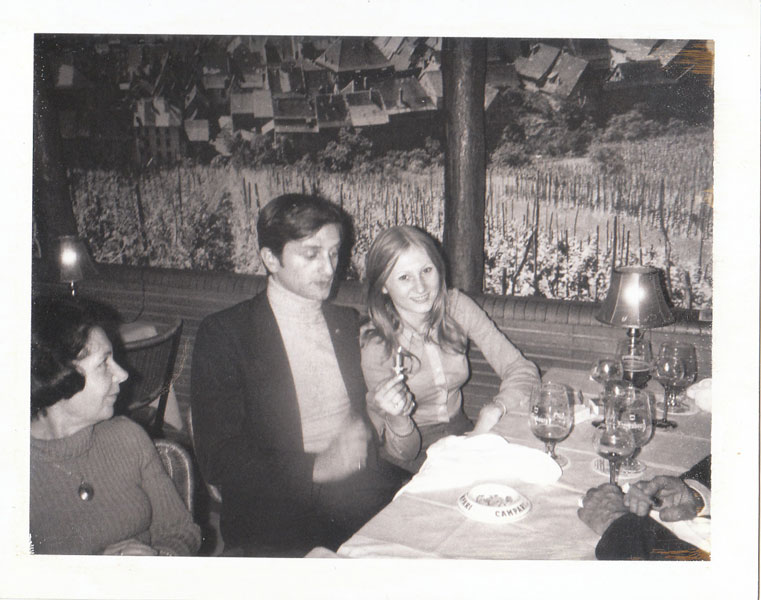 Cette fois, je suis avec Marie-Christine. Nous nous sommes connus à 19 ans (en 1969… avouez que c’est une date prédestinée) et mariés l’année suivante en 1970. Sur la photo, vous voyez une petite bougie : nous sommes en train de fêter notre première année de vie commune . Bientôt le mariage…