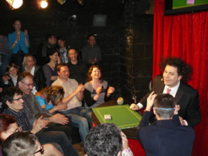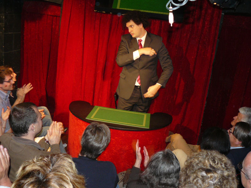 Nous venons de finir un mois de festivités au Double Fond pour fêter nos 23 ans d’existence ! A cette occasion, comme certains le savent, nous avons reçu Eric Antoine pour quelques spectacles et une conférence. Je dois dire que l’ambiance a été particulièrement bonne. Salles archicombles, publics survoltés… Le Double Fond dans toute sa splendeur ! Quel bonheur… Alors j’ai eu envie aujourd’hui de partager avec vous quelques photos souvenir de ces soirées, ainsi qu’un très joli mail que j’ai reçu de la part de Pierre Dez (ou Cavaflar pour les intimes de ce blog !).