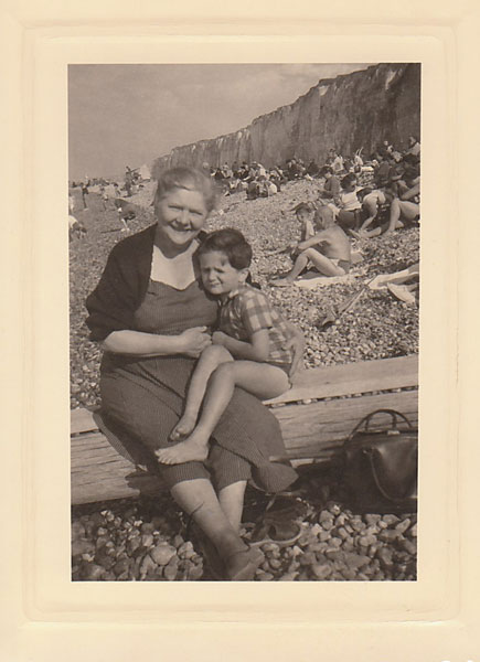Toujours moi, mais cette fois sur les genoux de ma grand-mère. Je passais mes vacances avec mes grands-parents, chaque année, en Normandie. Le bonheur de mes jeunes années !