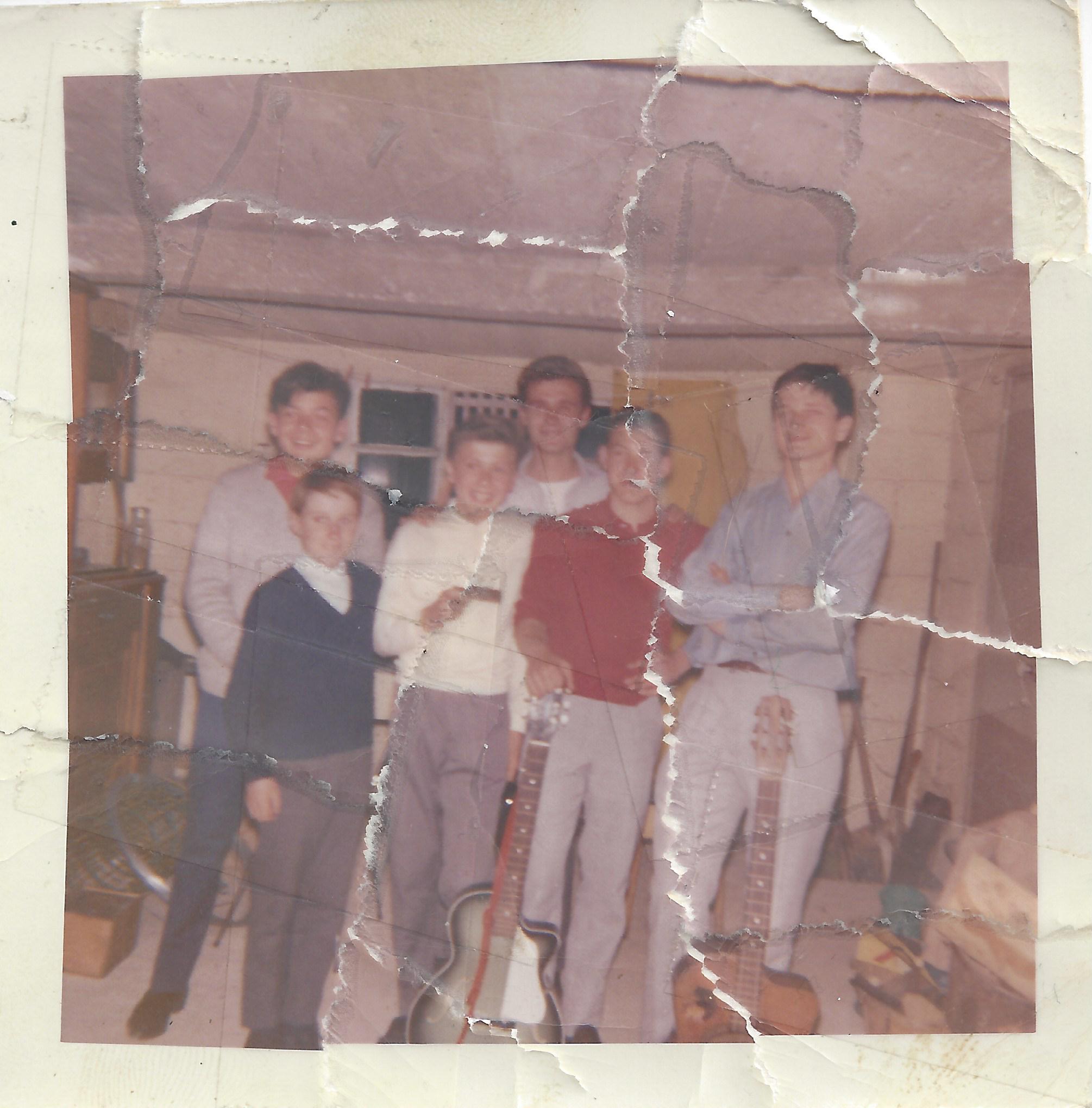 Je suis à l’extrême droite sur la photo. J’ai dans les 15/16 ans et c’est le premier groupe (et le dernier) musical que je crée. Ma partie, c’était la guitare (on la voit à mes pieds). La scène se passe dans les coulisses de Bercy, non je rigole, dans le garage d’un des autres petits musiciens présents. C’est à Trouville, lieu béni où j’ai passé toutes mes vacances avec mes grands-parents, chaque été de ma naissance à mes 17 ans, à peu près !