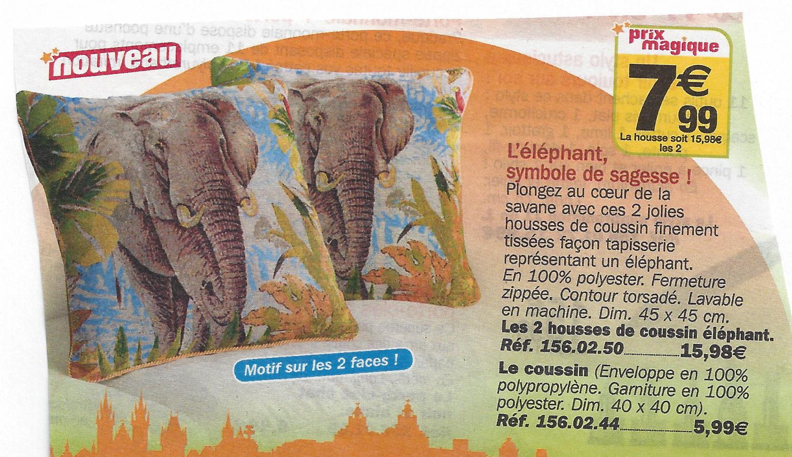 Vous remarquerez que les prix sont toujours étudiés au centime près ! Et notez le raffinement des arguments de vente : c’est fou ce qu’on peut dire de deux coussins synthétiques !