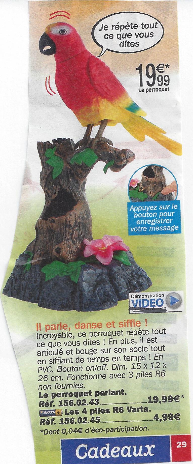 Et le perroquet qui fait tout, vous l’aviez ou pas encore ? Méfiance car ce spécimen répète tout ce que vous dites ! ha ha ha !
