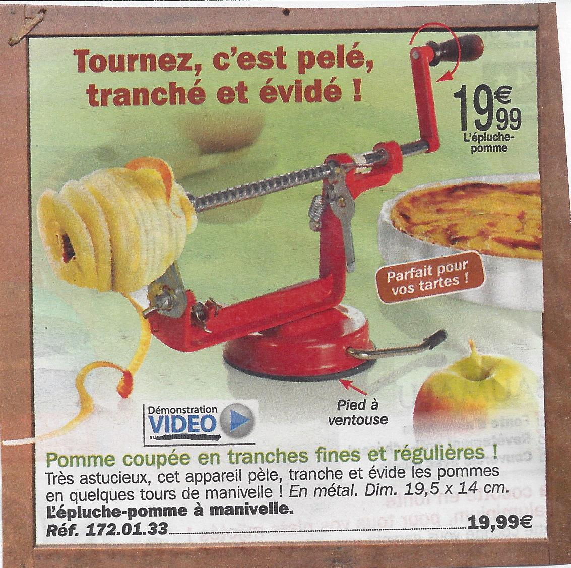 Je vous ai gardé le meilleur pour la fin. L’outil, qui paraît on ne peut plus facile d’utilisation ( !), va vous permettre de devenir le roi ou la reine de la tarte aux pommes ! En plus l’appareil ne ressemble pas du tout à un outil, c’est d’un esthétisme parfait pour votre cuisine. Que du bonheur ! Bon courage…