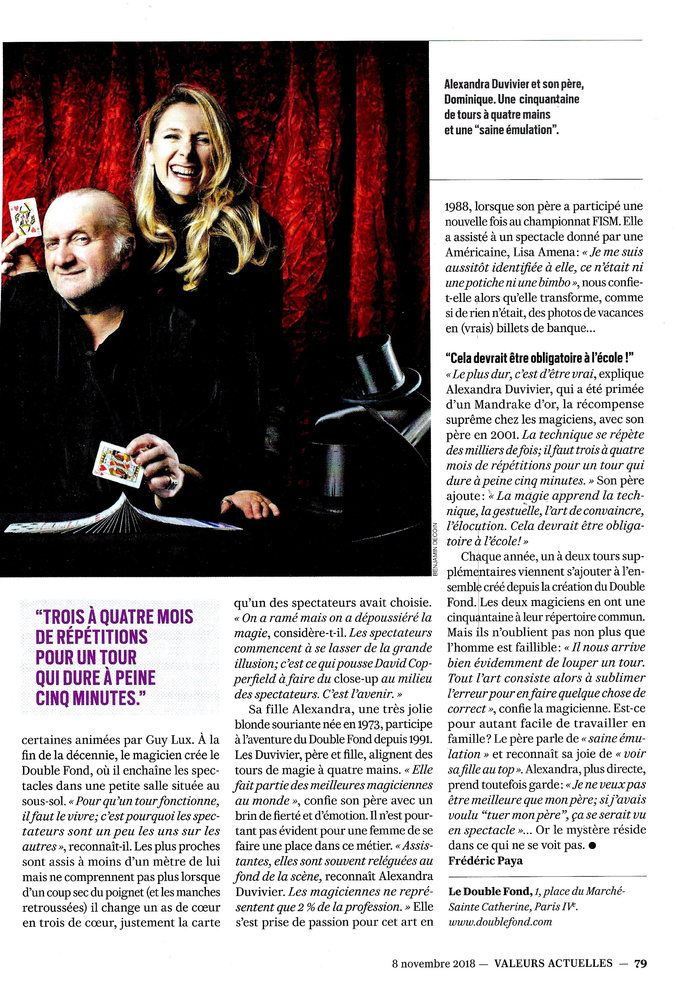 Alexandra et Dominique Duvivier : 2 pages dans Valeurs Actuelles