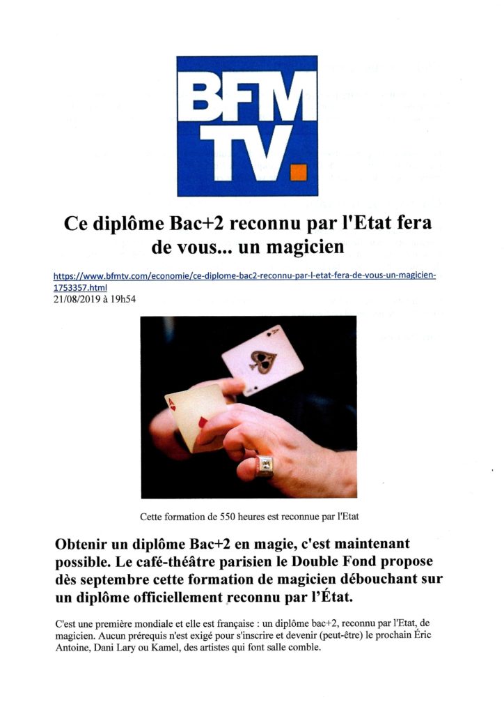 Ici un reportage sur RFI : https://soundcloud.com/user-696416829/le-journal-de-9h00-2408-sujet-la-premiere-formation-de-magicien-reconnue-par-letat